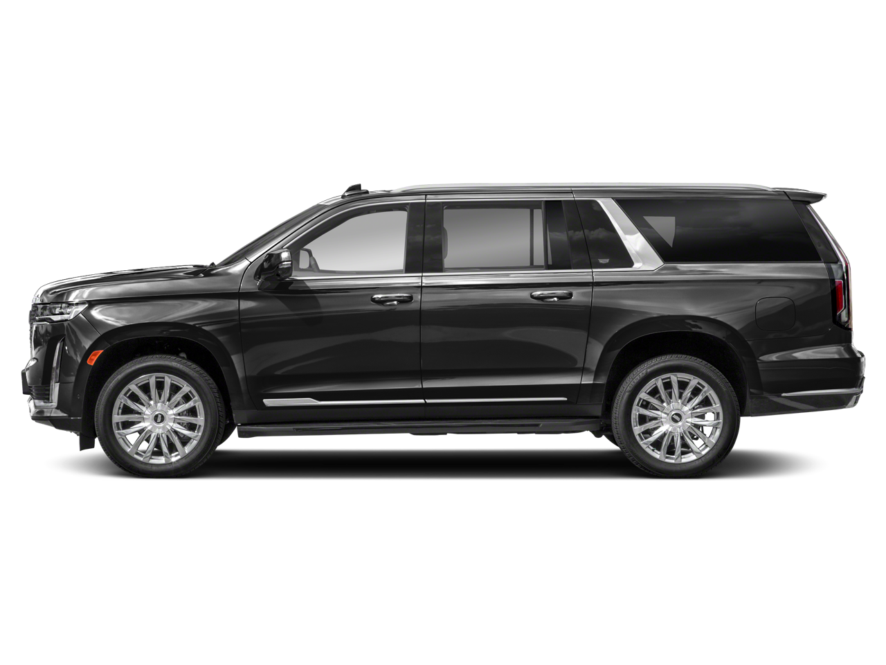 Preferred Equipment Group 1SB: Automatic Seat Belt Tightening; Power Panoramic Tilt-Sliding Sunroof; Mechanical Limited-Slip Differential; Door Lock and Latch Shields; Enhanced Automatic Parking Assist; Lane Change Alert with Side Blind Zone Alert; Rear Camera Mirror Washer; Rear Camera Mirror; Single-Speed Active Transfer Case; Running Board Assist Steps; Heated and Ventilated Driver and Front Passenger Seats; Theft-Deterrent Alarm System; Reconfigurable Full-Color Head-Up Display; AKG Studio 19-Speaker Audio System; Vehicle Interior Movement Sensor; 22" 14-Spoke Alloy Wheels with Polished Finish; Rear Cross Traffic Alert; Vehicle Inclination Sensor; Reverse Automatic Braking; Glass Breakage Sensor; Premium Smooth Ride Suspension; Enhanced Automatic Emergency Braking; Adaptive Cruise Control. 3 Years of OnStar & Connected Services Plan. Argent Silver Metallic. Gloss Black Escalade Nameplate. Puddle Lamps with Cadillac Crest. **Equipment listed is based on original vehicle build and subject to ch